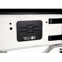 The Rugged Ridge Spare Tire Delete Plate eliminates the factory spare tire carrier on 2007-2018 Wrangler JK models for reduced weight, greater rear visibility and improved departure angles when off-road driving. Stamped from brawny steel plate, precisely drilled to match the JK tailgate and given a black textured powder coat, each Spare Tire Delete Plate is engineered to look like a factory-quality part in both fit and finish. With seven pressed vent louvers and an eye-catching cutout logo, the Rugged Ridge Spare Tire Delete Plate is a serious styling upgrade for anyone who prefers the hardcore off-road image or simply runs a tire too large for conventional carry. The Rugged Ridge Tire carrier Delete Plate is also available in a complete kit that includes both a low-profile license plate bracket and high-mount brake light relocation bracket for a total tailgate makeover.