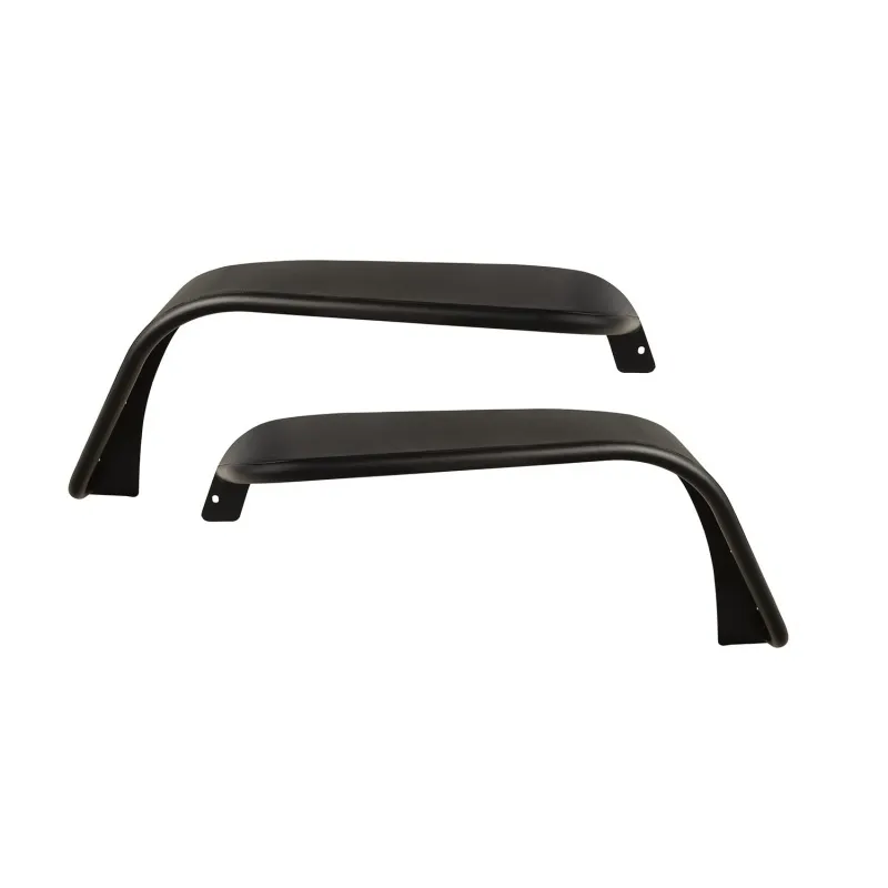 Taking your Jeep off-road is truly one of life?s simple pleasures. While others might take pride in a sparkling clean car, you wear that coat of mud-n-muck like a badge of honor. Rugged Ridge Tube Fenders were engineered for those die-hard few that love leaving the pavement behind but despise the cringe-worthy sound of tire meeting flare. Outfit your rig to increase your tire clearance, reduce those horrible churning noises and find a whole new unpolished persona. You?ll find yourself wheeling with a whole new level of confidence. Available with a rugged matte black finish in pairs for Front, Rear and Full Sets. (If retained, some drilling and trimming of factory fender liner required)