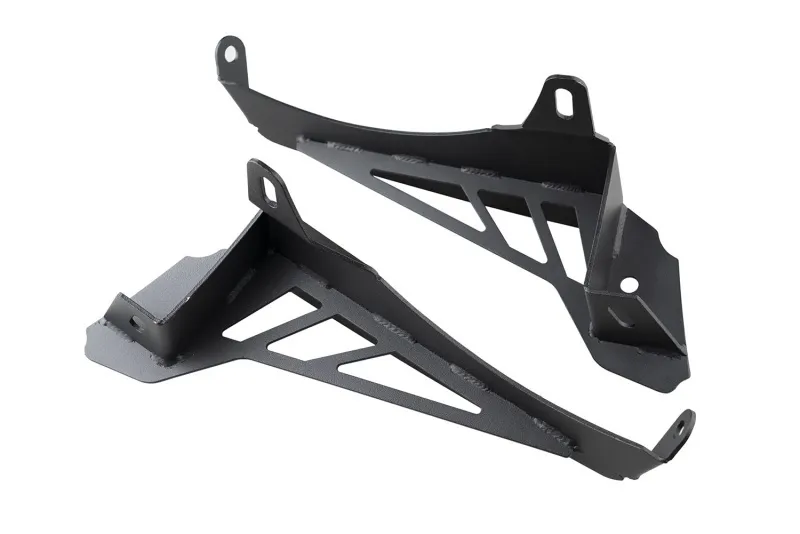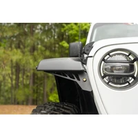 Modifying JL flares for off-road is easy and the look is nothing short of heroic with the Rugged Ridge Fender Chop Bracket Kit. By removing the bulky factory fender light assembly, you'll have greater clearance for oversized tires with nothing to get between you and that next obstacle. Sturdy steel chop brackets install easily and lend support for the front of the factory fender flare, adding a fearless, aggressive new look. And since Jeeps don't live solely off-road, we've built-in bullet-style side marker and turn signal lights to ensure safe on-road operation too. Brackets come in pairs, for both Rubicon and Sahara models, and feature a matte black powder coat finish that blends seamlessly with the factory flare finish. All installation hardware and instructions are included for a hassle-free install in record time.