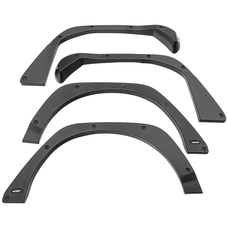 Taking your Jeep off-road is truly one of life's simple pleasures. While others might take pride in a sparkling clean car, you wear that coat of mud-n-muck like a badge of honor. Rugged Ridge Tube Fenders were engineered for those die-hard few that love leaving the pavement behind but despise the cringe-worthy sound of tire meeting flare. Outfit your rig to increase your tire clearance, reduce those horrible churning noises and find a whole new unpolished persona. You'll find yourself wheeling with a whole new level of confidence. Available with a rugged matte black finish in pairs for Front, Rear and Full Sets. (If retained, some drilling and trimming of factory fender liner required)