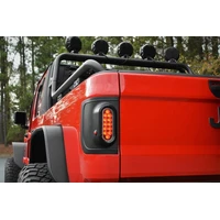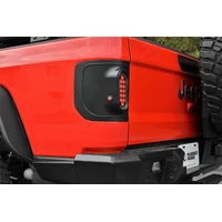 At a place where the trail grows narrow and the terrain becomes even more unforgiving, that's no place to navigate with bulky factory taillights dangling from your rig. That's why keeping things tight and remarkably bright with Flush Mount Taillights from Rugged Ridge is your best bet. We start with a rugged model-specific mounting plate molded from a trail-proven impact-resistant ABS thermoplastic capable of taking whatever abuse the trail is dishing out. The compact And flush-mounted 6 in. oval light assemblies are DOT-approved and provide weatherproof housing for twelve highly efficient LEDs that serve for taillight, brake light, reverse lamp, and turn signal functions, while recessed bullet-style marker lights improve visibility from the side. Since Rugged Ridge engineers their Flush Mount Taillights for your Jeep's particular platform, the wiring harness and connectors are all plug-n-play down to the necessary load resistors to keep things working reliably. And unlike some manufacturers' offerings, with Rugged Ridge, there's no cutting or holes to drill in your Jeep. It's a great way to help ensure your day on the trail doesn't cost you a taillight.