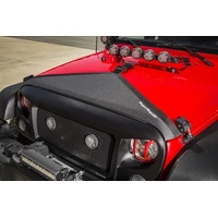 Protect your JK's hood from unsightly damage caused by bugs, rocks and road debris with Rugged Ridge Hood Bra. Our one-piece design bra is constructed of durable crush grain vinyl that defends against the hazards of everyday driving while the pillow-soft inner layer pampers your paints finish, shielding it from scuffing and scratches. Since this Hood Bra is made specifically for the Wrangler JK, it won't interfere with factory or aftermarket hood catches and installs quickly & easily with an adjustable strap secured to the footman loop. Since when did protecting your paint look so great?
