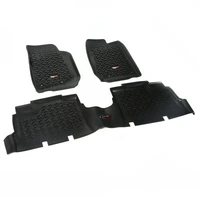 Need an affordable solution to keep the cabin floors of your Jeep looking factory fresh? Try Rugged Ridges All Terrain Floor Liners! Made of a durable OE-quality thermoplastic material that can withstand the rigor of daily abuse, each liner is perfectly contoured to your vehicles floor for precise secure fitment (floor hook attachment where applicable). The raised lip captures all spills, water and debris keeping your interior pristine. Features a chevron shape patented deep tread technology. Patent 8,163,369, D627,285, 2,699,641