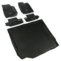 Need an affordable solution to keep the cabin floors of your Jeep looking factory fresh? Try Rugged Ridges All Terrain Floor Liners! Made of a durable OE-quality thermoplastic material that can withstand the rigor of daily abuse, each liner is perfectly contoured to your vehicles floor for precise secure fitment (floor hook attachment where applicable). The raised lip captures all spills, water and debris keeping your interior pristine. Features a chevron shape patented deep tread technology. Patent 8,163,369, D627,285, 2,699,641