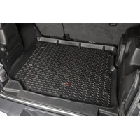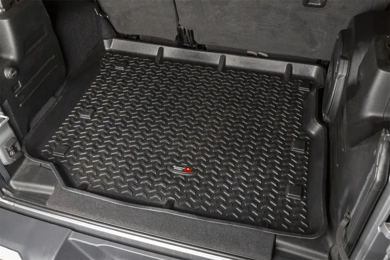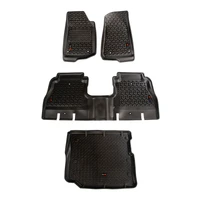 Need an affordable solution to keep the cabin floors of your Jeep looking factory fresh? Try Rugged Ridge's All Terrain Floor Liners! Made of a durable OE-quality thermoplastic material that can withstand the rigor of daily abuse, each liner is perfectly contoured to your vehicle's floor for precise secure fitment (floor hook attachment where applicable). The raised lip captures all spills, water and debris keeping your interior pristine. Features a chevron shape patented deep tread technology. Patent 8,173,369, D627,285