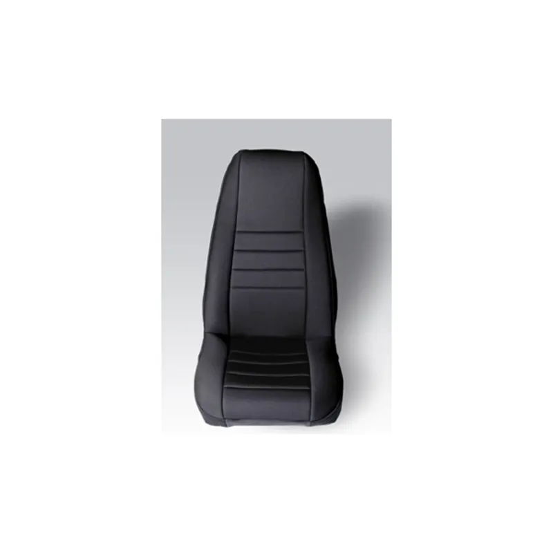 Custom Fit Neoprene Seat Covers. These covers are constructed of durable neoprene creating the best looking custom seat cover available. Rugged Ridge does not use that cheap stretch nylon on their seat covers! Neoprene (wet suit material) is a great fabric to protect your seats from dirt, water and whatever mother nature can throw at you. No more burned legs from hot vinyl seats! Each cover is custom tailored for your Jeep's original equipment seat style making your seats look like they have been recently reupholstered. Installation is easy with special designed elastic cords, nylon straps and hooks that attach to your seat and to the seat cover mounting points. The center portion (color) goes all the way to the top of the seat.