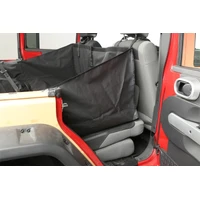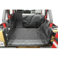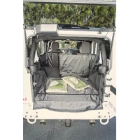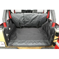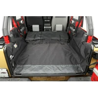 A versatile Jeep deserves versatile accessories. Keeping you on the-go with ease, the patent pending rear Configurable Cargo Covers (C3)offer complete protection for the rear cargo area of your Jeep. By protecting the carpet and plastic trim from damage, scratches, pet claws, dirt, and other debris, it'll stay looking pristine through all your daily tasks. No mess, no stress! A custom made and functional accessory for 2007 to current JKs, this unique design also allows for a pet friendly space, ideal for your pet to rest during long off-road trips. Featuring water resistant material, the split fold feature allows for 40-60 rear seat lowering, and provides coverage with your rear seat up, partially or fully lowered-- flexible and functional! A flip out cover flap keeps dirt from falling into the rear tailgate door gap. The built-in front curtain wall helps to keep items and pets from entering the front seat area. A unique side retention system insures the cover stays securely in place as you load or un-load. Easy to install and remove so you get protection when and where you need it. Rugged Ridge C3 Rear Cargo Covers, ready for whatever.