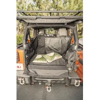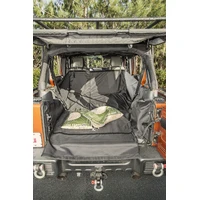 A versatile Jeep deserves versatile accessories. Keeping you on the-go with ease, the patent pending rear Configurable Cargo Covers (C3)offer complete protection for the rear cargo area of your Jeep. By protecting the carpet and plastic trim from damage, scratches, pet claws, dirt, and other debris, it'll stay looking pristine through all your daily tasks. No mess, no stress! A custom made and functional accessory for 2007 to current JKs, this unique design also allows for a pet friendly space, ideal for your pet to rest during long off-road trips. Featuring water resistant material, the split fold feature allows for 40-60 rear seat lowering, and provides coverage with your rear seat up, partially or fully lowered-- flexible and functional! A flip out cover flap keeps dirt from falling into the rear tailgate door gap. The built-in front curtain wall helps to keep items and pets from entering the front seat area. A unique side retention system insures the cover stays securely in place as you load or un-load. Easy to install and remove so you get protection when and where you need it. Rugged Ridge C3 Rear Cargo Covers, ready for whatever.