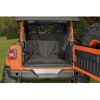 A versatile Jeep deserves versatile accessories. Keeping you on-the-go with ease, the rear Configurable Cargo Cover (C3) offers complete protection for the rear cargo area of your Jeep Wrangler JL, keeping your interior pristine throughout your daily use by protecting your carpet and plastic trim from damage, scratches, pet claws, dirt, and other debris. This custom made and functional accessory also allows for a pet friendly space for your pet to rest during long road trips. The C3 Cargo Cover is compatible with rear fold and tumble seats making it both flexible and functional! The cargo cover also sports water resistant material, a flip out cover flap to keep dirt from falling into the rear tailgate door gap, and a built-in front curtain wall to keep items/pets from entering the front seat area. The unique side retention system insures your cover stays securely in place as you load and unload. With its easy install and removal, the Rugged Ridge C3 Rear Cargo Cover gives you the protection you need, when and where you need it!