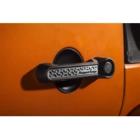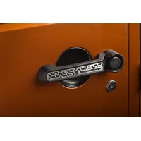 Bring a tasteful off-road accent to your JK with Rugged Ridge Elite Door Handle Inserts featuring a cool tread-inspired inlay. Each insert is made from lightweight cast aluminum with a lustrous brushed finish and black recesses giving an eye-catching custom touch to your rig. Kit Includes 3 inserts, for both doors and rear tailgate. These inserts install with ease with double-sided automotive tape. No sharp edges result in a comfort-fitting install.
