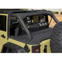 The Rugged Ridge Tonneau Cover for 07-18 Wrangler JK is an great-looking way to help secure the contents of your rear cargo area, while helping preserve the interior surfaces from the damaging effects of the elements. The cover secures easily to the tub rails giving the interior a finished appearance and does not limit access to the rear seats or tailgate, when installed. The Rugged Ridge Tonneau Cover is the perfect way to keep your gear out of sight for a little added peace of mind. In addition, Wrangler JK 4-Door models can benefit from the increased coverage of the Tonneau Cover Extension (13550.05). With the extension installed and the rear seat folded down, the covered storage area extends to a massive five feet, reaching all the way to the front seats.