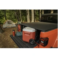 The Armis Soft Folding Bed Cover has all the features to put it at the top of its class. The covers soft curves and sleek design create a contoured, low-profile appearance, matched only by the real world functionality the Gladiator calls demands. The tarp is constructed from a premium matte black woven fabric that is consistent with the Gladiator factory dress, for an OE quality look. This high-end material delivers a remarkable and stylish finish that is resistant to dirt and grime, so it stays looking cleaner longer, regardless of where your JT takes you. Will work with or without Jeep? Trail Rail Cargo System
