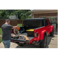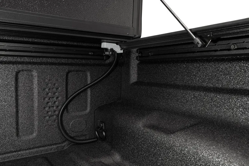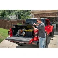 The new Armis Hard Folding Cover with LINE-X(R) for the Jeep Gladiator is designed to protect your JT's bed and cargo while maintaining its sense of strength and style. The heavy-duty aluminum panels are finished with a LINE-X(R) specialty automotive coating designed to provide superior protection from scuffs and scratches, even in the harshest off-road conditions. An innovative dual-action tailgate seal offers full tailgate function, allowing the tailgate to be closed regardless of the bed covers position. Armis Hard Folding Cover with LINE-X(R) is proudly made in the USA and comes backed by a Limited 5-Year Warranty.