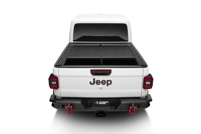 With the Armis Retractable Tonneau Cover with Max Track gives you the benefit of a retracting tonneau cover with adding to the potential of your Gladiator. It all begins with the heavy-duty vinyl-over-aluminum composition that gives you extraordinary fortitude and fluent, friction-dree operation. This cover offers a sharp looking appearance with the protected locking mechanism to keep your box (and what is inside it) protected & out of site. Unearth the ultimate convenience, with the ability to open, close, and everything in between- and you don't have to touch the tailgate! With not all excursions fitting neatly into the bed of a truck, we cannot forget the benefit of having the Max Track Rails. It doesn't matter if you have the Trail Rail System- because you can get the cover whether you have the Trail Rail or not. The Max Track is a t- slot rail system that works with many racks & accessories from Yakima, Thule, Rhino- Rack, and more! By adding a rack system to these tracks, you will be able to augment your above bed hauling capabilities. The Armis is easy to put in & bolstered by the Rugged Ridge limited five year warranty. Get ready for your next feat and get your new Armis cover today!