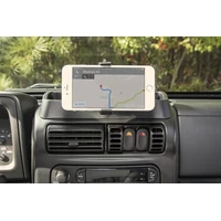 With this Dash Multi Mount Phone kit from Rugged Ridge, you can take your smartphone along for the ride! The custom fitted cradle holds your smartphone securely during trail rides. With your hands safely on the steering wheel, now you have an attachment point for convenient access to your phone, Go Pro, or POV Camera, so you won't miss a moment of trail action. The form fitting design matches the exact contours of the factory Wrangler dashboard, and is secured with self-drilling screws.
