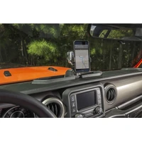 The patented Dash Multi-Mount System for Wrangler JL and Gladiator JT is easily the most versatile dashboard accessory mounting system available today. Featuring a universal ball mount for driver info gadgets and a tripod stud for both point and shoot or POV cameras; this mounting system allows the driver to use either one individually or both at the same time! The system mounts across the top center dash recess and incorporates two deep storage compartments, handy for holding small essentials, while the convenient phone holder attachment positions your smart phone or GPS device in clear view of the driver for safer and legal hands-free operation. Patent No. 9,132,779