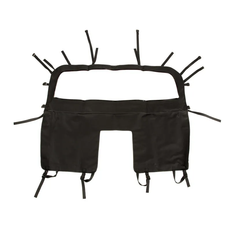 Our Rugged Ridge Windbreaker protects the front cab area from rain, dirt and debris when using a summer top, and even extends the summer top season by helping contain cabin heat during those cold fall and winter months. Each Windbreaker is crafted from the same high quality Black Diamond soft top fabric as our tops and installs easily attaching to the sport bar for a secure fit. Special rear opening allows for easy access to cargo area while DOT-approved rear glass allows for greater rear visibility. Available for both 2 and 4-door Wrangler JK models.
