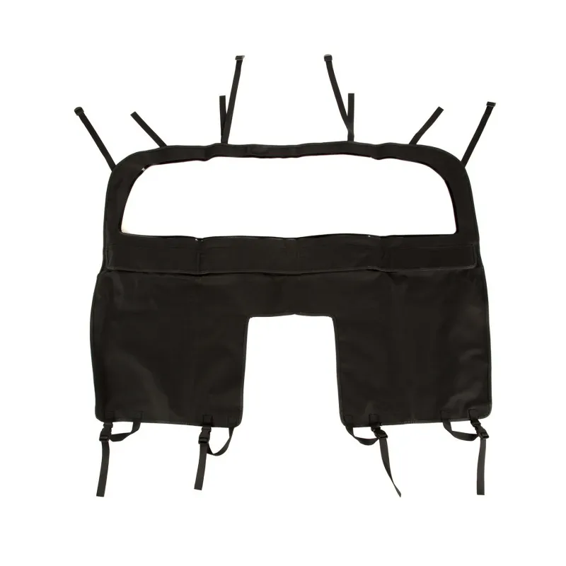 Our Rugged Ridge Windbreaker protects the front cab area from rain, dirt and debris when using a summer top, and even extends the summer top season by helping contain cabin heat during those cold fall and winter months. Each Windbreaker is crafted from the same high quality Black Diamond soft top fabric as our tops and installs easily attaching to the sport bar for a secure fit. Special rear opening allows for easy access to cargo area while DOT-approved rear glass allows for greater rear visibility. Available for both 2 and 4-door Wrangler JK models.