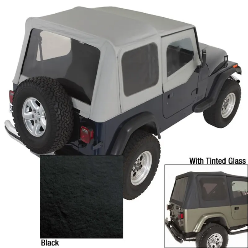 Rugged Ridge Fabric Replacement Soft Top has been developed out of years of industry research and engineering. Our trained staff of Jeep experts have developed an entire program that offers the best value, selection and design of any Fabric Soft Top offering. Each Fabric Soft Top is specifically designed to easily fit the factory original soft top hardware. Simply take off the old top and slip on the new. It is just that easy! All Rugged Ridge Soft Tops feature durable vinyl coated polyester and cotton fabric and crystal clear DOT approved glass windows that will last the test of time. All sewn seams use marine grade thread to make sure it does not deteriorate or discolor in the sun. Each seam is literally welded shut with durable heat seal tape to keep moisture out while keeping the original look of the top intact. Attaching the Rugged Ridge Top is easy with the factory original belt rail attachment method; simply tuck under the rail and go!