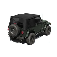 The Montana Soft Top is designed as a high-quality direct replacement for your Wrangler TJ's factory top. Simply remove the old top and slip on the new Montana Top. The Montana Soft Top features sturdy reinforced stitching on the heavy pull areas and heavy-duty 30 mil thick rolled glass windows with a 31% tint to help keep out the direct sunlight. All Montana Soft Tops are built from 20 oz. durable vinyl coated Black Diamond polyester and cotton fabric that defies the elements. All sewn seams are double-stitched using marine grade thread for superior sun and moisture resistance. Each stitched seam is literally welded shut with a durable heat seal to repel moisture while maintaining the look of the original top. Installing the Rugged Ridge Montana Top is easy with the factory original belt rail attachment method; simply tuck the skirt under the rail and go! Each Rugged Ridge Montana Soft Top is backed by an industry leading 5-year limited warranty against manufacturer defects.