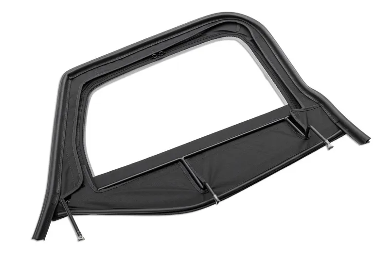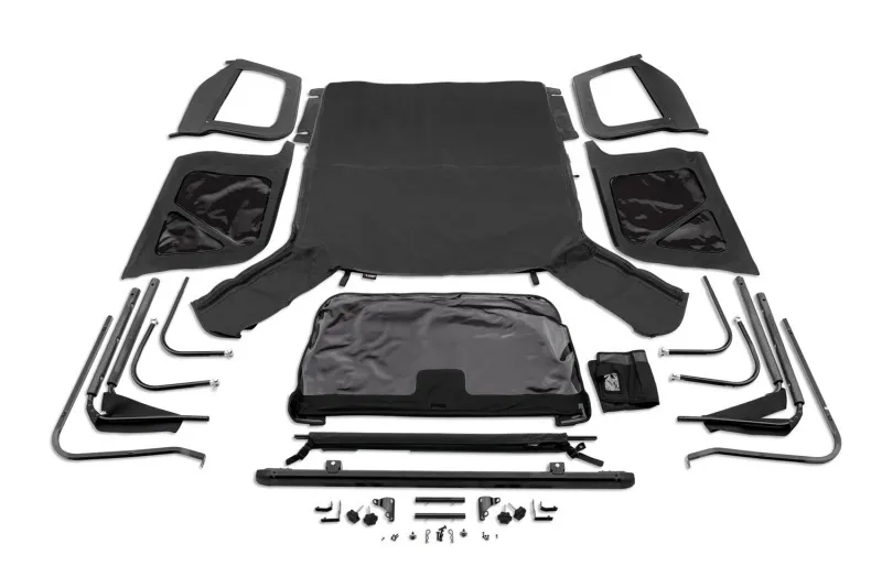 Turning back the clock on your Jeep's aging top has never been this easy. The Rugged Ridge Complete Soft Top w/ Frame is the complete package and includes everything you need to restore the looks and function of your Jeep's soft top to showroom condition. Enjoy the same appearance and fit as the factory original but with some added features like DOT-compliant 35% tinted windows and zippered front storage compartments, ideal for storing sunglasses, cellphones, and small personal items. Manufactured to factory specs from a premium Black Diamond fabric with marine-grade self-correcting zippers on the windows, the Rugged Ridge Complete Soft Top will endure years of use and look good doing it. Top assembly is available for CJ7, YJ, and TJ models with factory half or full doors! It includes all new soft top fabric and complete hardware kit.