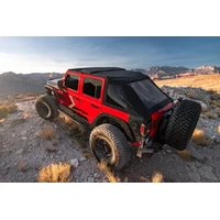 The Rugged Ridge Voyager Soft Top is easily the most stylish and versatile soft top available for Jeep Wrangler JL models. Designed with sleek, fastback styling and packed with all the features you could want in a replacement top. The Voyager's frameless design installs snugly over the factory sport bar for a contoured fit and low profile, with no bulky bows or unsightly bulges. Larger tinted side windows offer greater visibility and are easily removed by means of heavy duty self-correcting zippers. Once removed, the windows store conveniently inside the built-in overhead panel, keeping them safe from damage and ready to install at a moment's notice. Best of all, the Voyager top's fold-back feature affords you open-top enjoyment in just seconds. Constructed of 30 oz. premium sail cloth fabric with sealed seams, the Voyager Soft Top is built to last and backed by an industry-leading 5-year warranty.