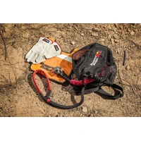 When you are preparing for your next off-road adventure, don?t forget to pack the essentials needed for vehicle recovery. Rugged Ridge makes it simple to know that you have what you need for any scenario with our Premium Recovery Kit. Each kit includes a 30-foot kinetic recovery rope with a 7500 load limit that makes quick work of even the stickiest of situations, a 20,000 pound snatch block pulley, a 3-inch tree strap, a pair of 7/16-inch soft rope shackles, a high-visibility winch line dampener and a pair of rugged leather work gloves- all packed in a lightweight mesh recovery gear bag. You can hit the trails with the confidence knowing that you?re prepared for almost everything.
