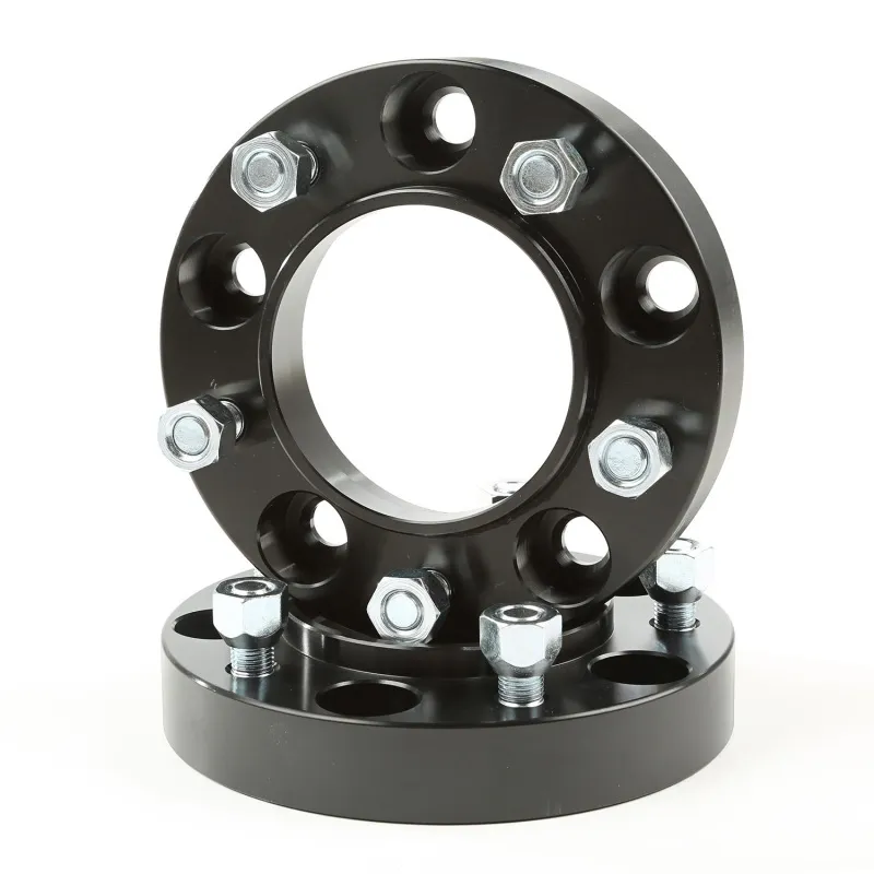 This pair of 1.25- in. thick black aluminum wheel spacers from Rugged Ridge moves your wheels out to help fit wider tires and give your Jeep a wider track and improved stability. Constructed of double anodized black extra thick 6061T6 aluminum for long life and extra corrosion resistance. All hardware is grade-8 for extra strength.