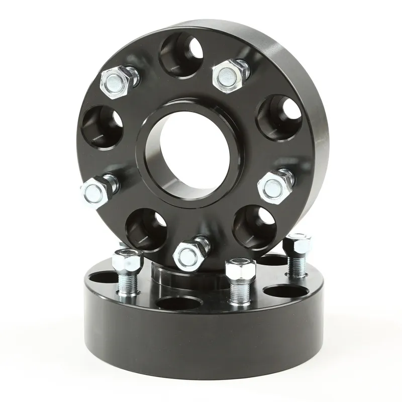 This pair of 1.75- in. thick black aluminum wheel spacers from Rugged Ridge moves your wheels out to help fit wider tires and give your Jeep a wider track and improved stability. Constructed of double anodized black extra thick 6061T6 aluminum for long life and extra corrosion resistance. All hardware is grade-8 for extra strength.