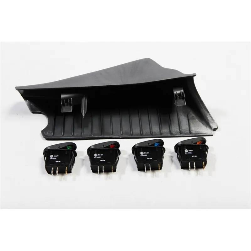 Looking for a handy place to mount your accessory switches that doesn't require cutting or other modifications? The Rugged Ridge A-Pillar Switch Pod has pre-molded cutouts to allow you to mount up to four aftermarket switches in easy reach on the drivers side A-pillar, and out of the way of the shifter handle. Our Pillar Pod has the textured molded finish just like the factory plastic pillar cover it replaces. It snaps into place just like the OE!