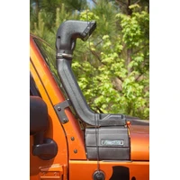 Dusty trail rides and crossing over deep water --anyone who takes their rig off-road is likely to encounter these conditions. The patented Modular XHD Snorkel System from Rugged Ridge relocates the vulnerable stock air intake location to help reduce dust clogged filters and the risk of hydro-locking your engine. This snorkel is the first snorkel designed with the modular functionality of a Pre-filter Low Mount and Ram High Mount air intake design. Unlike other snorkels, you do not have to give up flexibility for functionality. Not only did we engineer our snorkel to allow the windshield to fold and doors to be removed, we built it for use with our dual battery tray, windshield light bar and windshield light mounting tabs, because what good is having a snorkel to cross the river, if you have to leave your lights and the dual battery (to power your winch) on the other side? Note: Windshield light mounting tabs only compatible with low mount. Patent No. 8,960,347; D687,071; D687,072