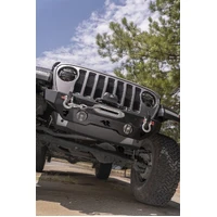 The heart of the Rugged Ridge Front Bumper Skid Plate is anincredibly strong body stamped from 4mm thick steel plateand features a unified fold-and-weld construction to deliverfull protection to the factory crash bar and electronic sway bardisconnect components. Designed to work with Rugged RidgeArcus, Spartacus and HD Series bumpers, the Front Skid Plate helps provide a morefinished overall appearance to the vehicles front end. With a durable light-texturedpowder coat finish that guards from rust and corrosion, it blends beautifully withfactory trim and aftermarket components.