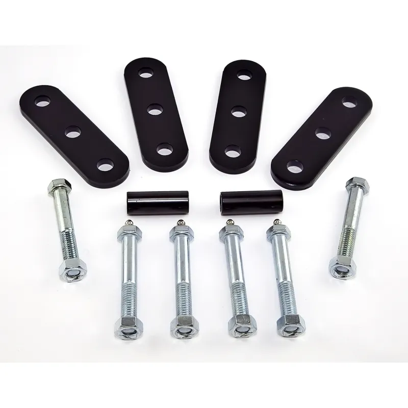 This pair of HD easily greased front and rear leaf spring shackles from Rugged Ridge fit the front or rear axles on 55-75 Jeep CJ5 and CJ6. Provide 1 inch of lift. No bushings included. Bolt on application. No drilling required.