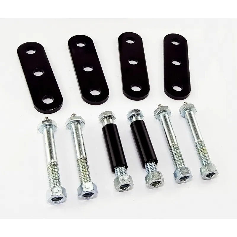 This pair of steel heavy-duty, easily greased front leaf spring shackles from Rugged Ridge adds 1 in. of lift. Direct fit. No bushings included.
