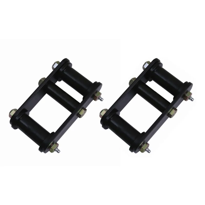 This pair of heavy-duty, easily greased front leaf spring shackles provide 1 inch of lift. Direct fit with a bolt on application. Black bushings included.