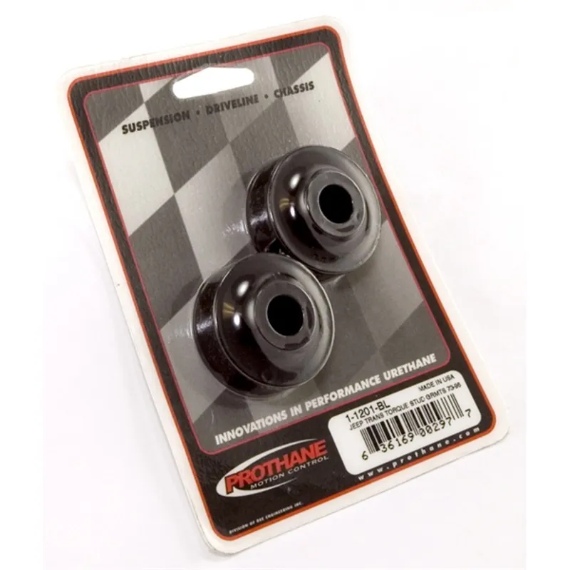 This pair of long lasting black polyurethane transmission torque arm bushings from Prothane offer better handling and control of your Jeep. Bolt on application for a direct fit.