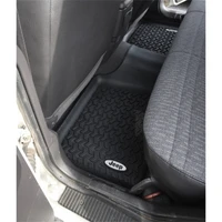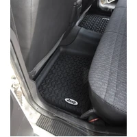 Rugged Ridge Floor liners provide complete protection for the cabin floor of your vehicle while keeping it looking factory fresh. Each liner is perfectly contoured to your vehicles floor for precise secure fitment (floor hook attachment where applicable). The raised lip captures all spills, water and debris keeping your interior pristine. The Chevron-shape patented Deep Tread Technology channels liquid away from your shoes keeping them dry. Made of a durable OE-quality Thermoplastic material that can withstand the rigor of daily abuse. Backed by our Limited Lifetime Warranty. Patent 8,163,369, D627,285, 2,699,641