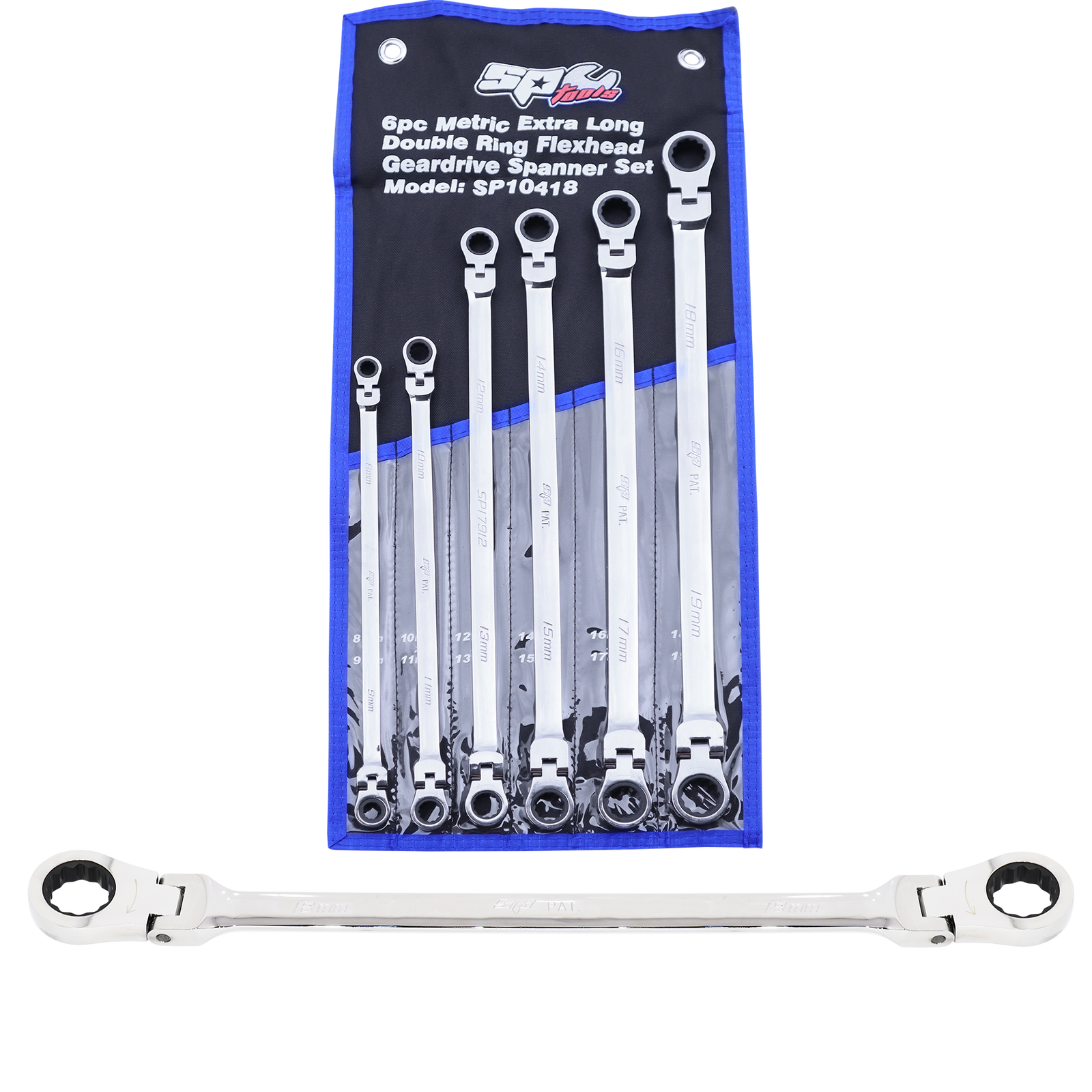 • Set includes: 8 x 9, 10 x 11, 12 x 13, 14 x 15, 16 x 17 & 18 x 19mm