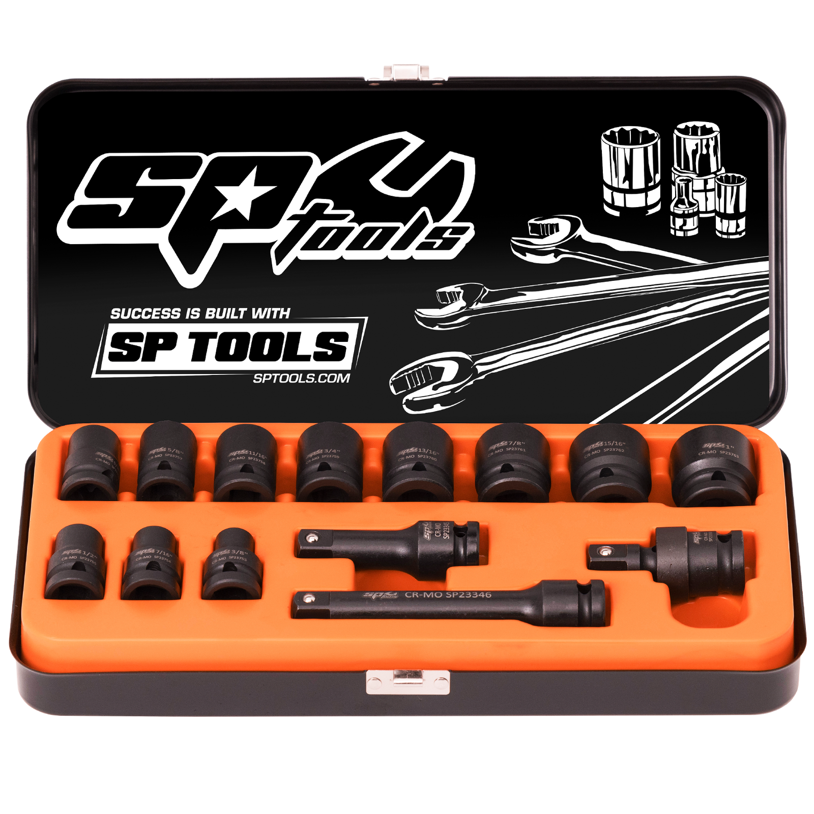 • 3/8, 7/16, 1/2, 9/16, 5/8, 11/16, 3/4, 13/16, 7/8, 15/16 & 1" Impact Sockets