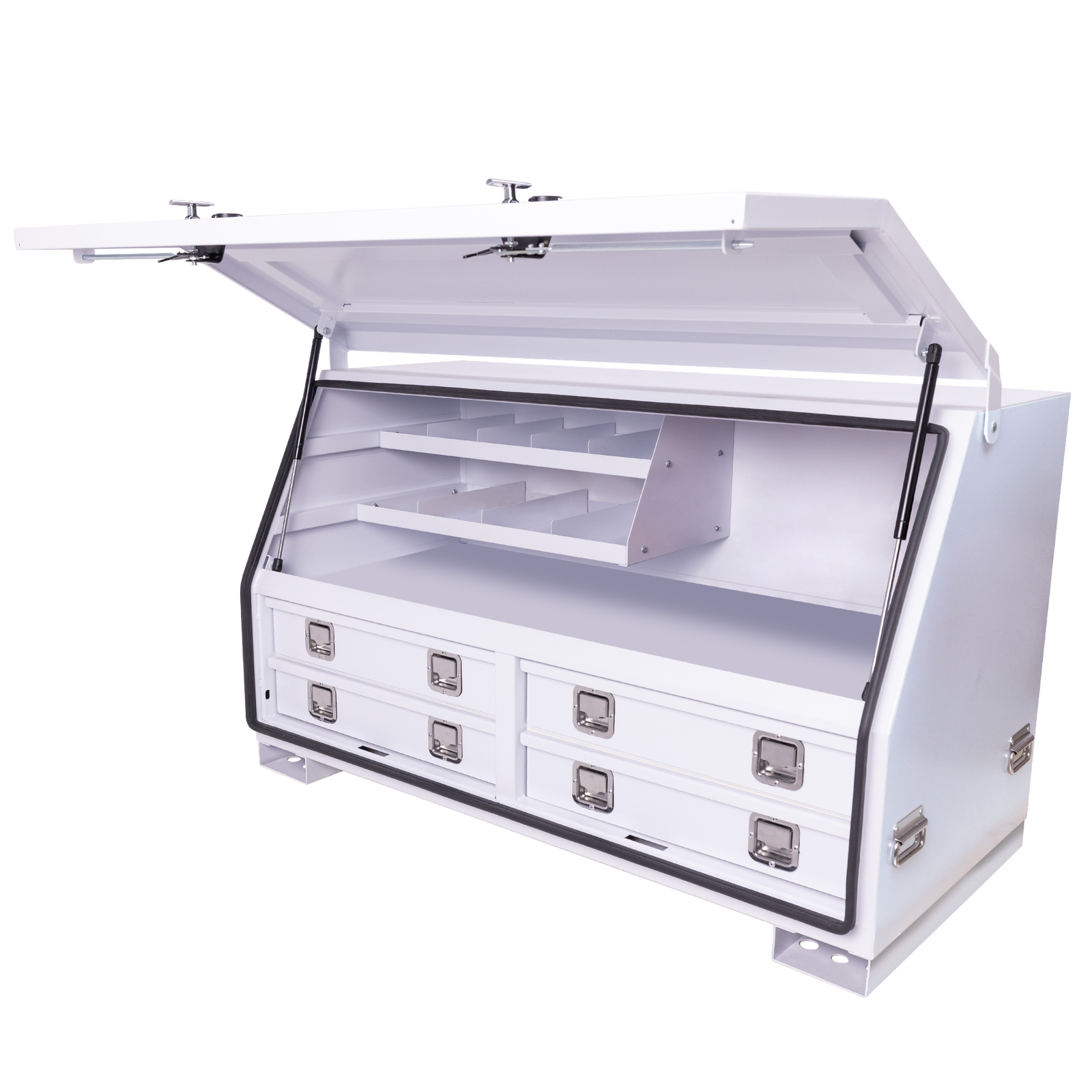 • Drop down heavy-duty security front panel with dual T-Handle locking system ensures your tools stay safe and secure