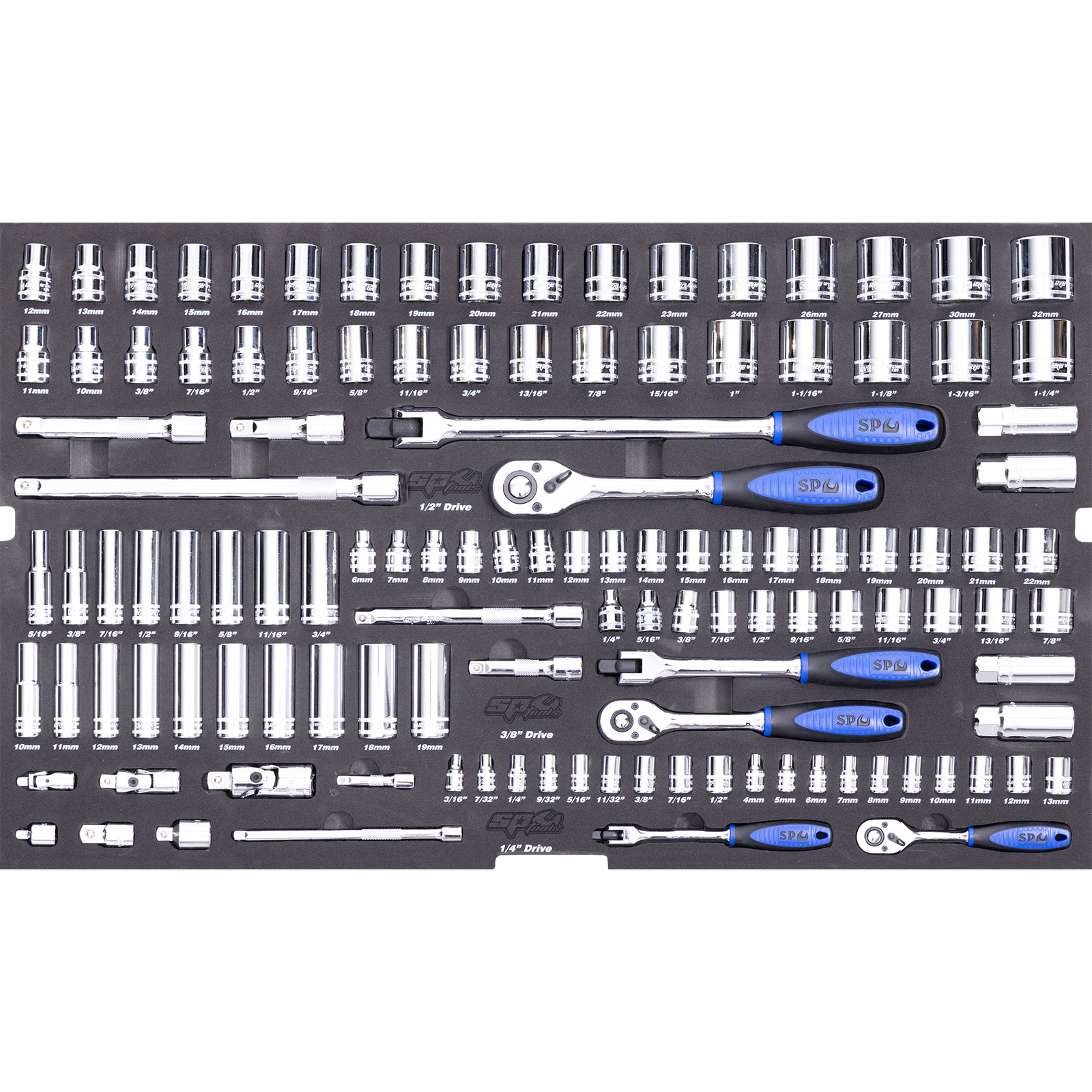 • 12pt - 3/16, 7/32, 1/4, 9/32, 5/16, 11/32, 3/8, 7/16 & 1/2"