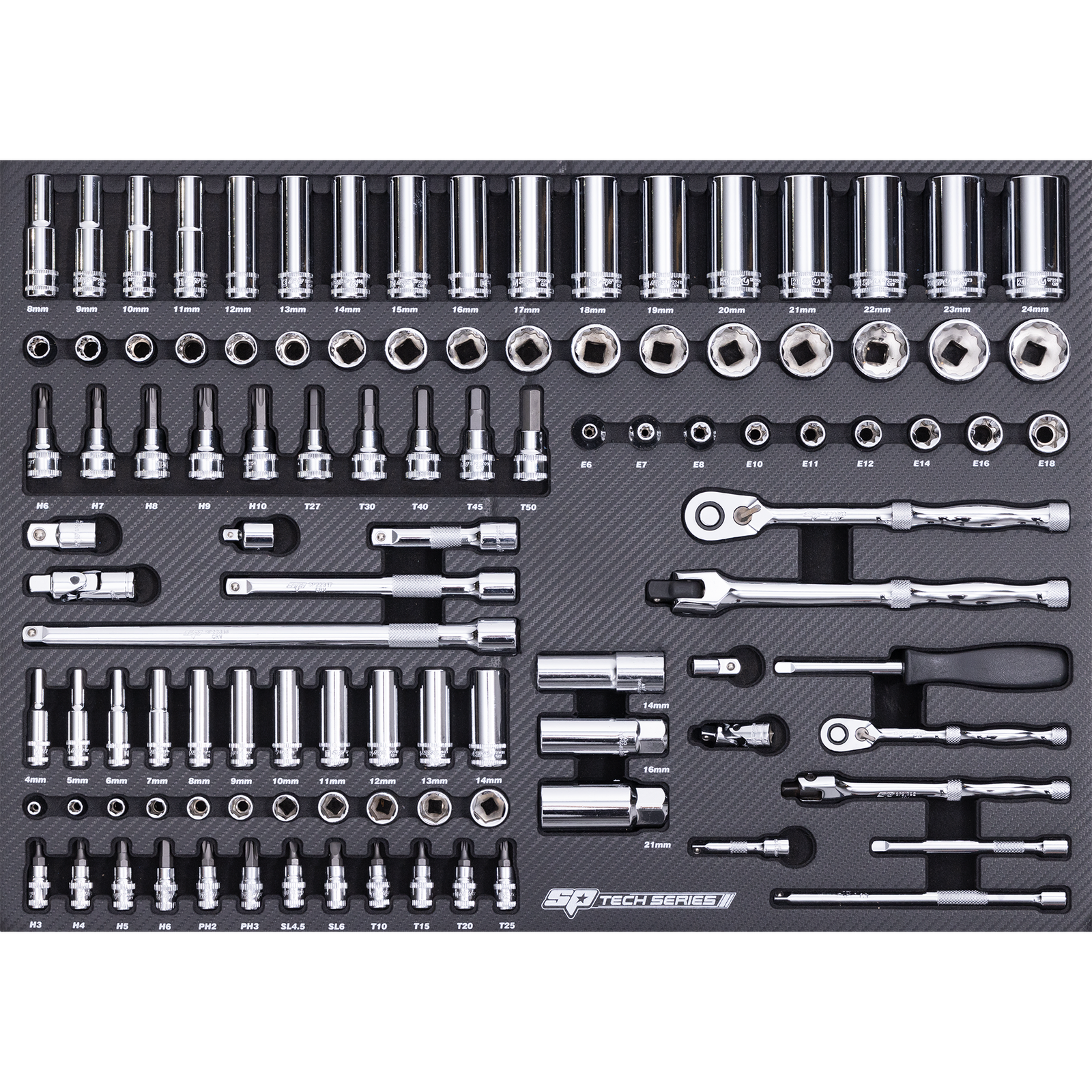 • E Torx - E6, E7, E8, E10, E11, E12, E14, E16 & E18
