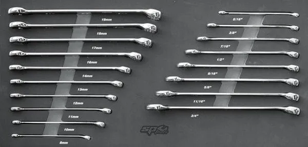 • Quad Drive Combination Spanners - 5/16, 3/8, 7/16, 1/2, 9/16, 5/8, 11/16 & 3/4"