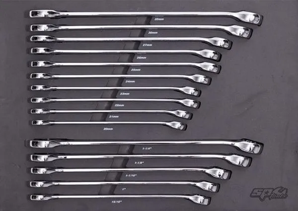 • Quad Drive Combination Spanners - 1/4, 5/16, 3/8, 7/16, 1/2, 9/16, 5/8, 11/16, 3/4, 13/16, 7/8, 15/16, 1, 1-1/16, 1-1/8 & 1-1/4"