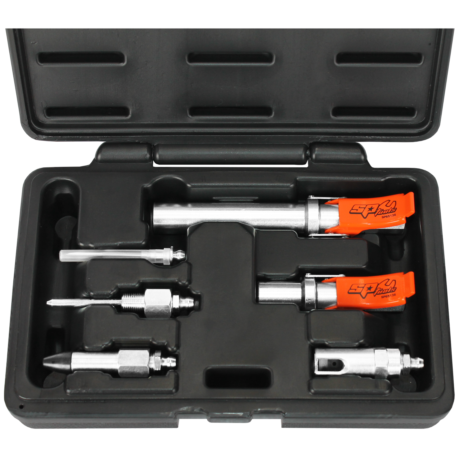 • KIT INCLUDESQuick release grease coupler - 74mmQuick release grease coupler - 130mmRight angle adaptorGrease injector needleSeal-off grease dispenserNeedle nose grease dispenser