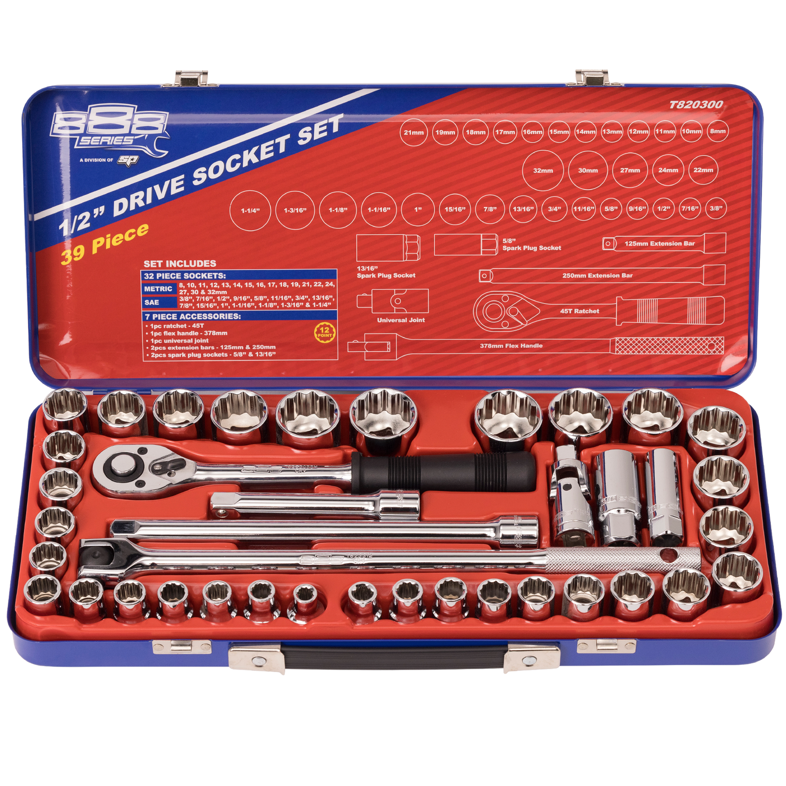 • SAE Sockets: 3/8, 7/16, 1/2, 9/16, 5/8, 11/16, 3/4, 13/16, 7/8, 15/16, 1, 1-1/16, 1-1/8, 1-3/16 & 1-1/4"