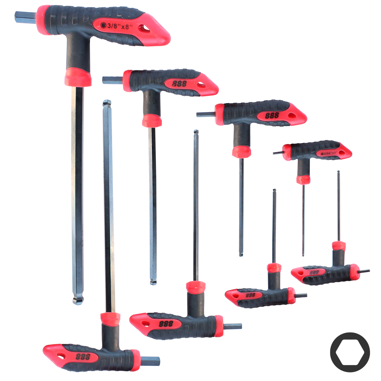 • 5/64", 3/32", 1/8", 5/32", 3/16", 1/4", 5/16" & 3/8" T-Handle Hex Keys