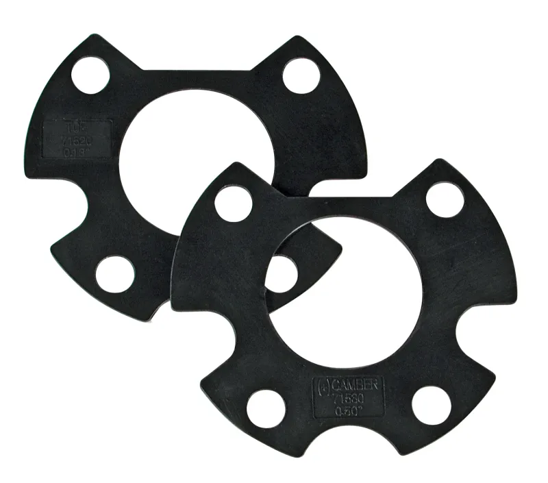These shims provide positive caster changes on vehicles by installing them between specific suspension components or the chassis. Stackable for larger changes.