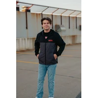 Great looking windbreaker with full front zipper, drawstring hood, and two-tone colors to wear everywhere.