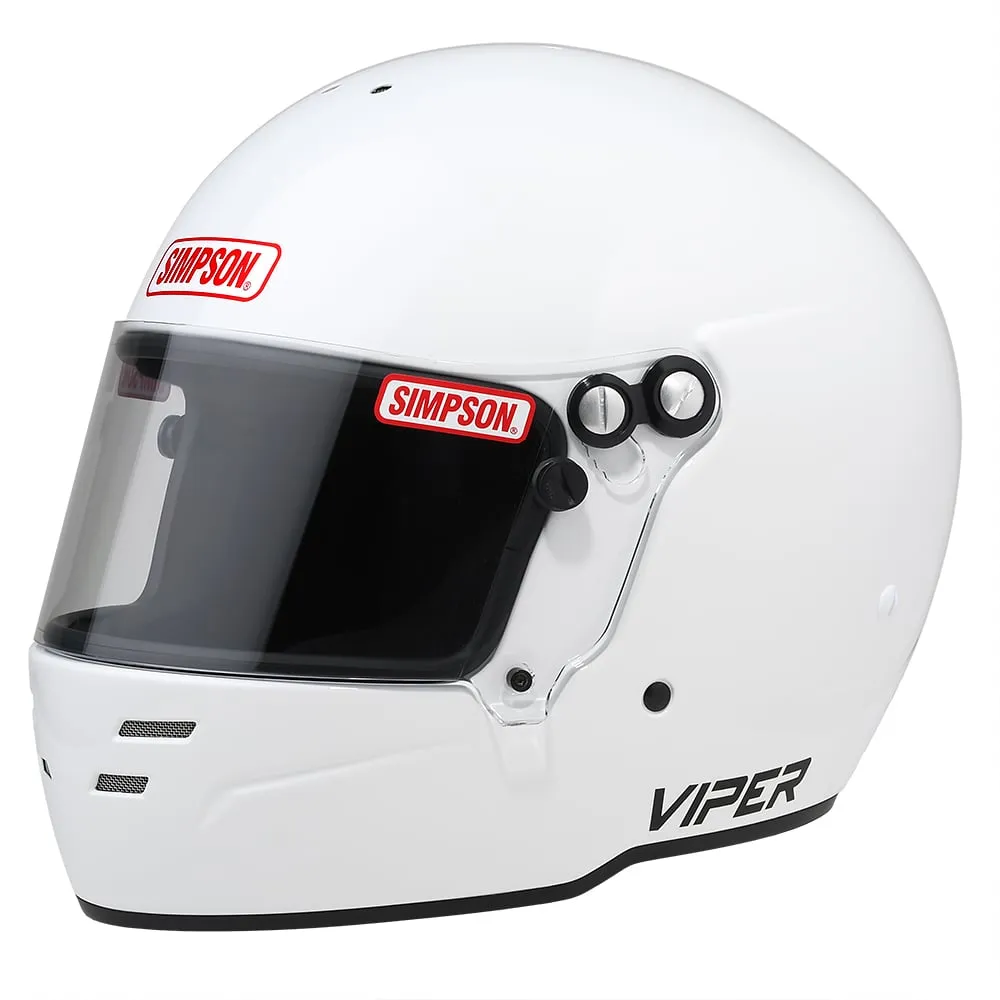 Simpson's Largest Eye Port EverClean sheet design New for 2021, the Simpson Viper offers exceptional range of vision with an extra-large eye port for those desiring maximum visibility. The Viper also gives the racer removable cheek pads and has top air and side air options available, while offering enhanced impact protection. Helmet ships with one clear face shield installed, additional face shields may be purchased separately.